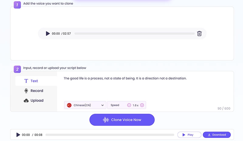 Just upload 10-15 minutes of Arthur Morgan’s voice and Vidnoz AI Voice Changer will clone the audio perfectly, just like the original Arthur Morgan talking in front of you.