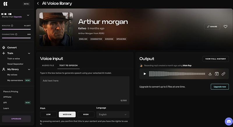 How to generate Arthur Morgan AI voice with Kits.ai