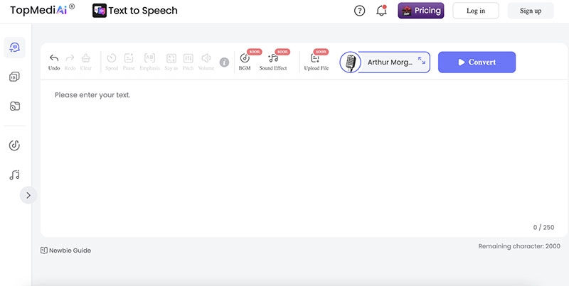 With a collection of AI tools such as text to speech, free AI headshot generator for passports, and more, TopMediai is a useful online platform for audio, video, and photo editing. You can generate a high-quality Arthur Morgan AI voice and a good variety of voices of celebrities, anime characters, etc. with it.