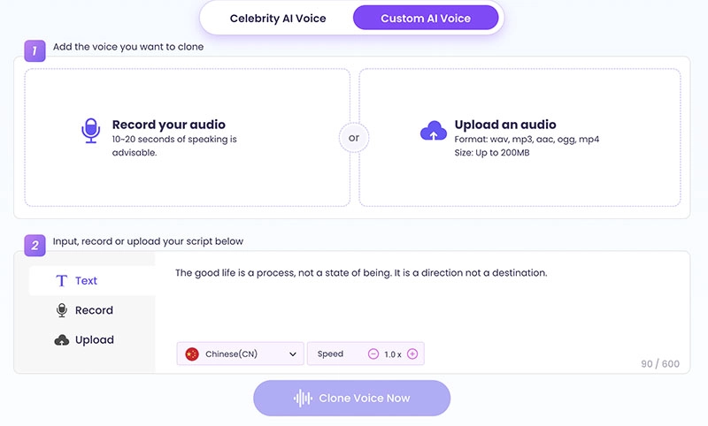 Step 3. Enter text to convert it to speech. You can also upload or record an audio clip to clone Arthur Morgan’s voice.