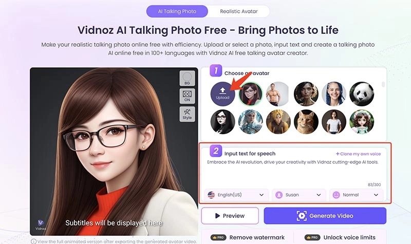 - With 1,500+ human-like AI avatars in different styles, Vidnoz AI allows you to create talking videos for marketing, social media, or any scenario.