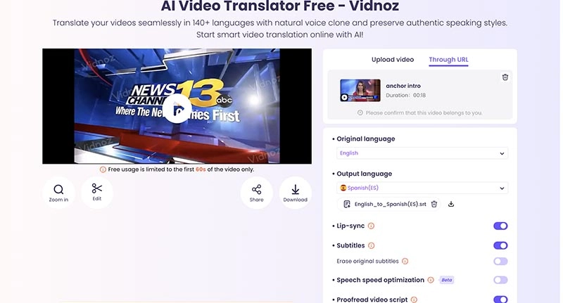 - Vidnoz Video Translator can make a seamless translation for voiceovers in 140+ languages. It’s the most convenient tool to get your content seen by the world.