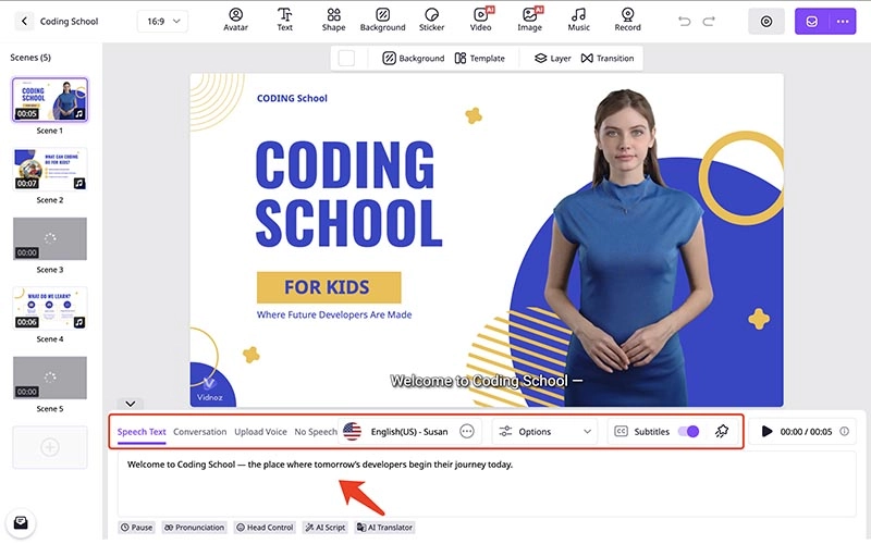 Vidnoz AI is more capable than you think. With its all-in-one online video generator, you can easily create professional and stunning videos with AI lip sync speeches. Whether you want to make a video for education, business, or other scenarios, the AI video generator can ensure perfect speech for better engagement!
