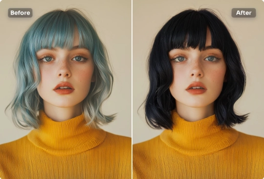 - Try on a new look before dyeing your hair: No need to commit right away! A black hair dye filter helps visualize the final result, making it easier to decide if black suits your style.