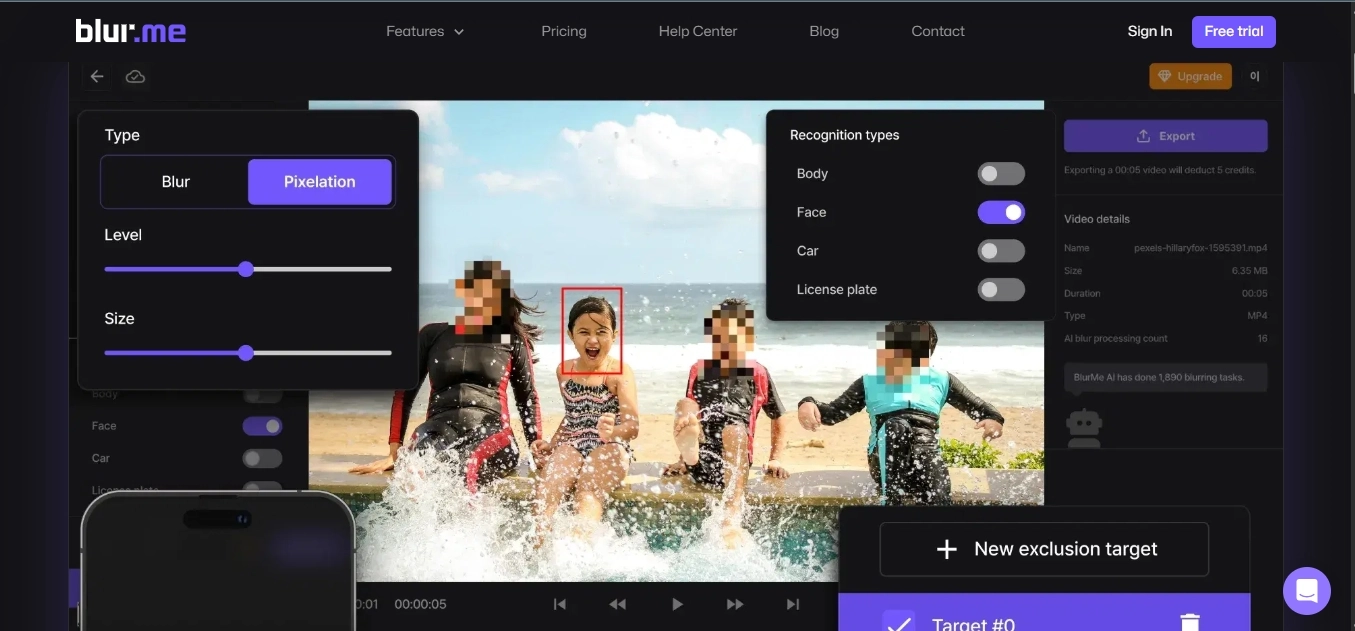 Another high-end tool with unique features is that it allows you to categorize blurred objects by car, face, body, license plate, or even more. Since it’s a professional-grade tool, it allows you to blur images, videos, and even CCTV recordings for safety purposes, such as hiding an individual's face when investigating a street incident.