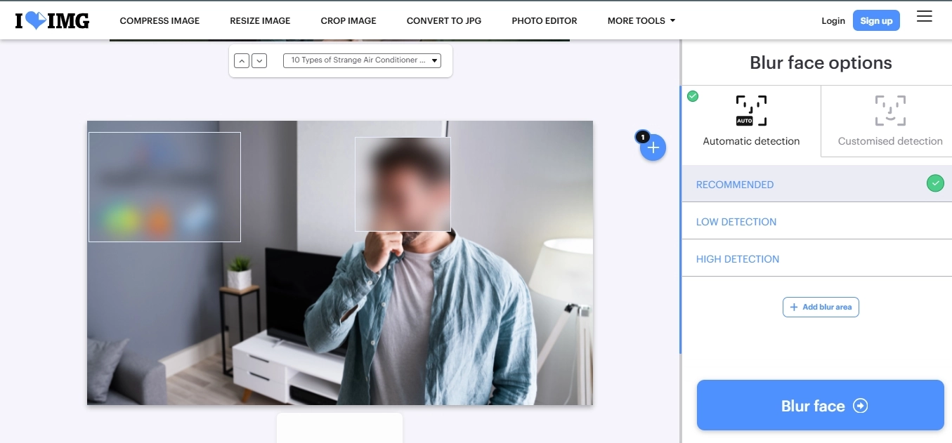 iLoveImg: Automatic Face Detection and Blur