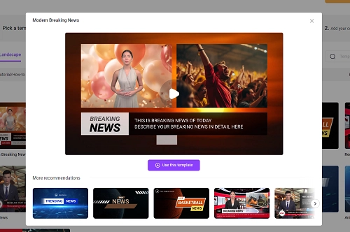 Step 2: Create a video by selecting ‘Breaking News’ templates.