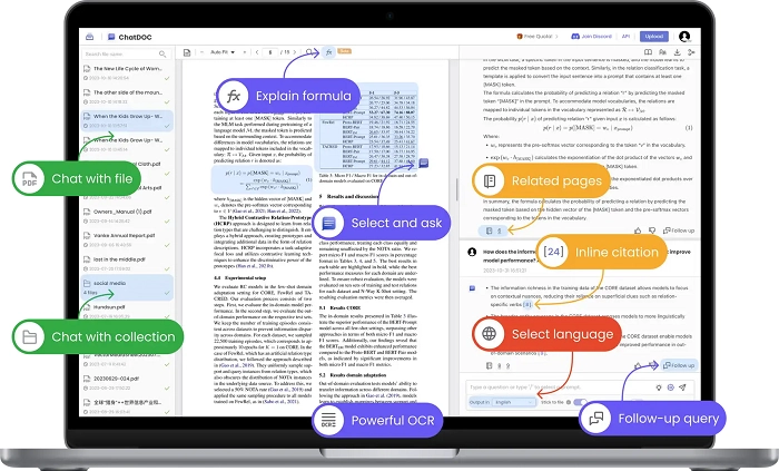 ChatDOC is one of the chat PDF AI alternatives that answers your questions instantly with cited sources. Besides chatting with any PDF, it also enables you to chat with DOC, DOCX, SCAN, WEBSITE, EPUB, MD, and TXT files.