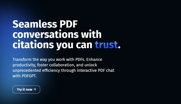 PDFGPT.io is the last recommended ChatPDF alternative. It serves for individuals and businesses to efficiently read and process complex and lengthy content. And its AI-driven automation can simplify the handling of complex PDFs into concise and clear conclusions.