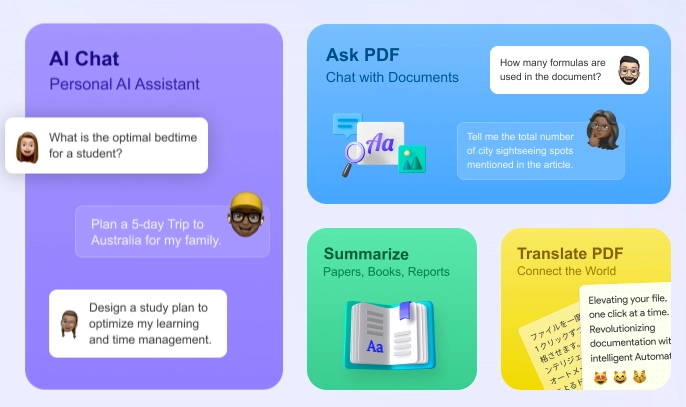 Different from those uncensored AI chatbots, UPDF AI is a safe-for-work and powerful online ChatPDF alternative which is powered by GPT-4. It improves productivity and creativity by Interacting with PDFs like summarizing, translating, explaining, asking questions, and working as an AI chatbot.