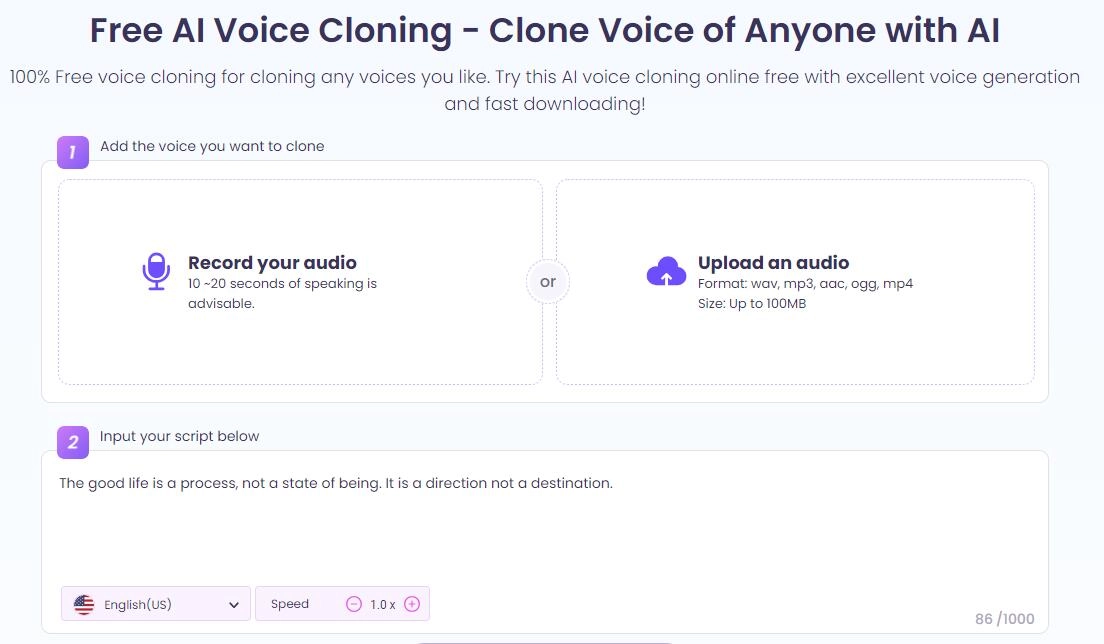 First of all recommendations is Vidnoz AI voice cloner developed by Vidnoz, an AI toolbox platform. It offers a wide selections of famous voices, enabling you to choose for voice cloning by text-to-speech or audio files. With it, you can clone voices of your favourite politicians like Donald Trump, business elites like Elon Musk, famous singer like Adele, Sports celebrities, popular actors and actresses, cyber influencers, cute ainme characters, etc, from worldwide, various fields.