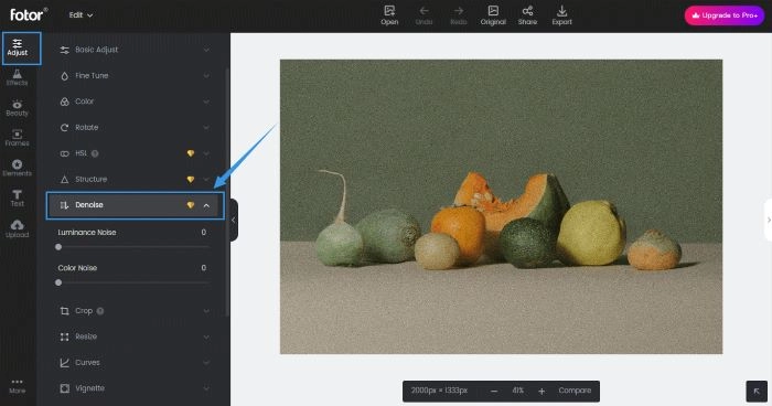 The following will take Fotor as an example to show you how to denoise the random variations and escalate the visual quality of the image.