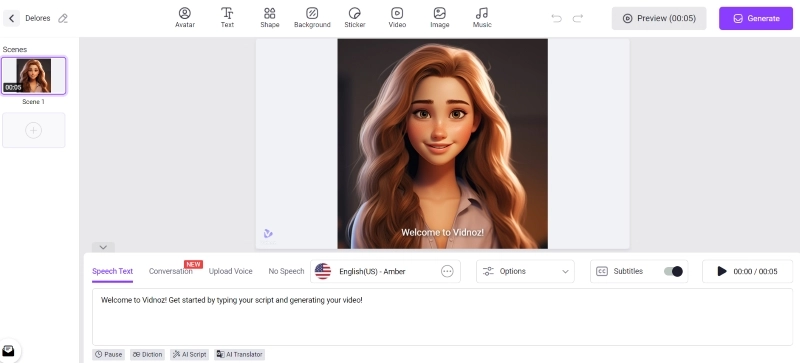 1. Vidnoz AI Video Generator – eLearning AI Avatar & Video Maker Free Online
