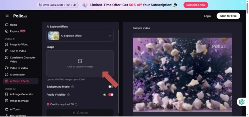 If you're looking to recreate the Explode AI effect, another reliable tool is found at pollo.ai. Here’s a step-by-step tutorial to use their platform: