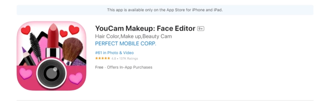 Pricing: Youcam Makeup has in-app purchase options for premium service which start from $1.49 and go up to $39.99.