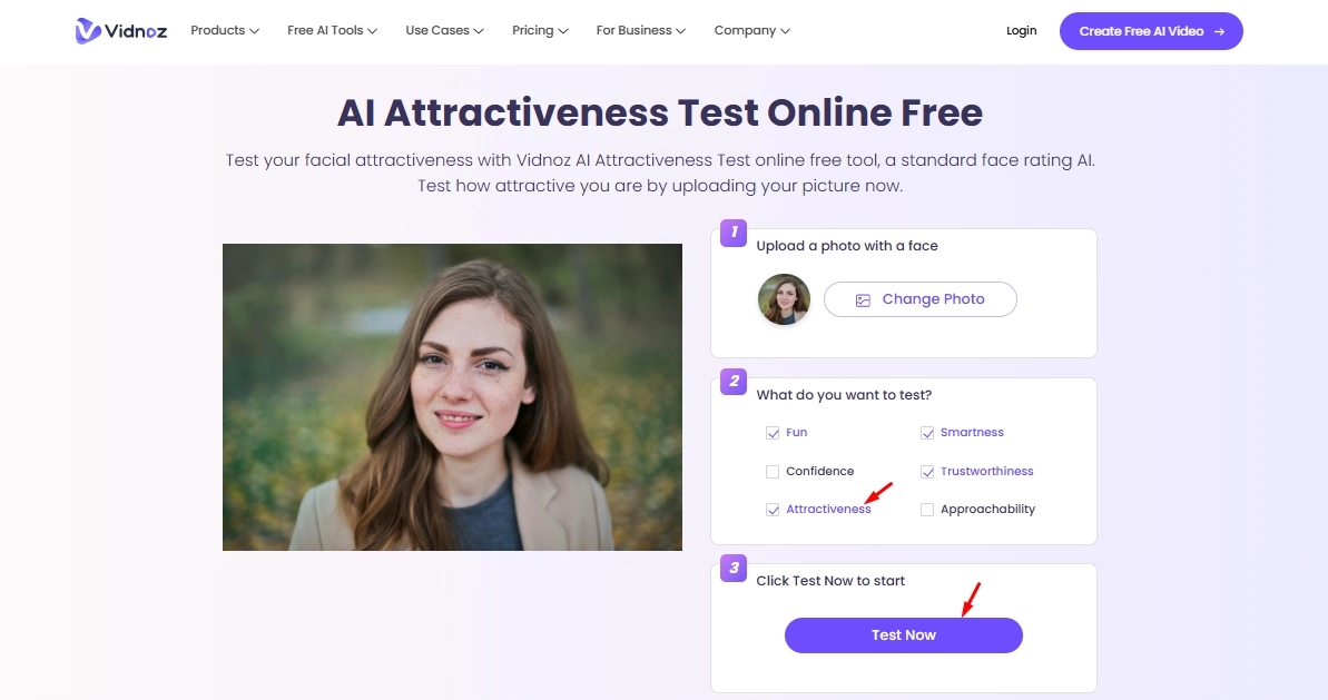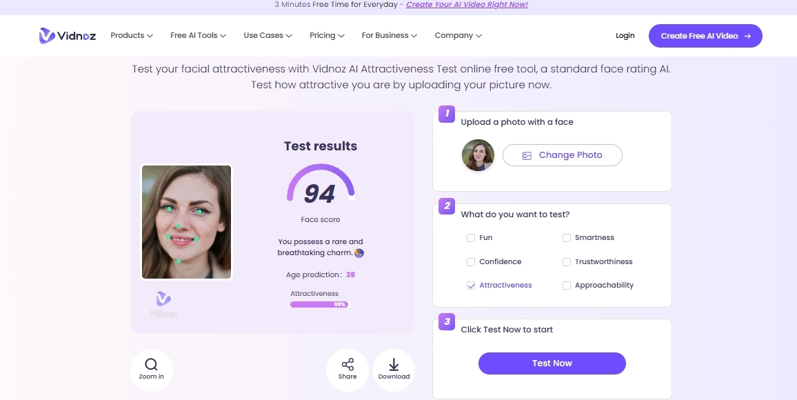 The above eyeliner filter tools offer unique perks and something special. As a bonus part, if you want to know which eyeliner style or color suits you best, you can check with Vidnoz AI Attractiveness Test. Thus, you can choose the most attractive one to improve your charm and check how attractive am I.