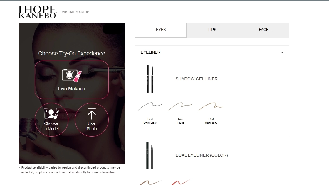 At the second last option, we have the Virtual Cosmo — an initiative online tool whose interface looks like you’re standing in front of your makeup mirror. The trays of makeup and eyeliner feature real-time experience.