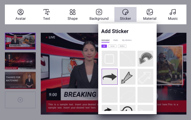 Customize: Then choose options to customize the new video, such as adding texts, backgrounds, stickers, materials, etc.
