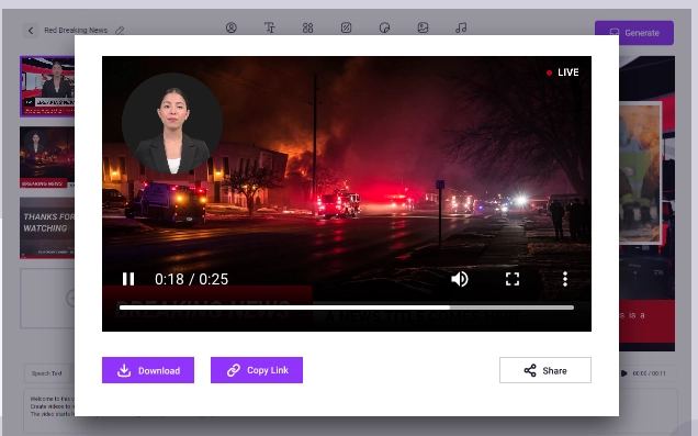 Generate video: Click “Generate” and Vidnoz will create a stunning video for you. When it is created you can download and share it online.