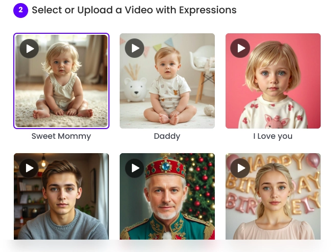 Step 3. You are free to choose an expression from the list or upload a video of your own.