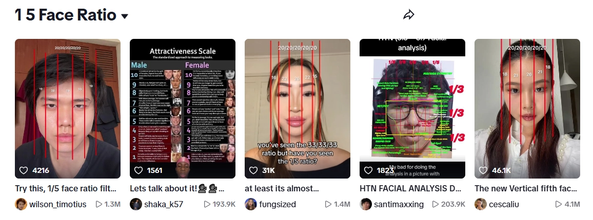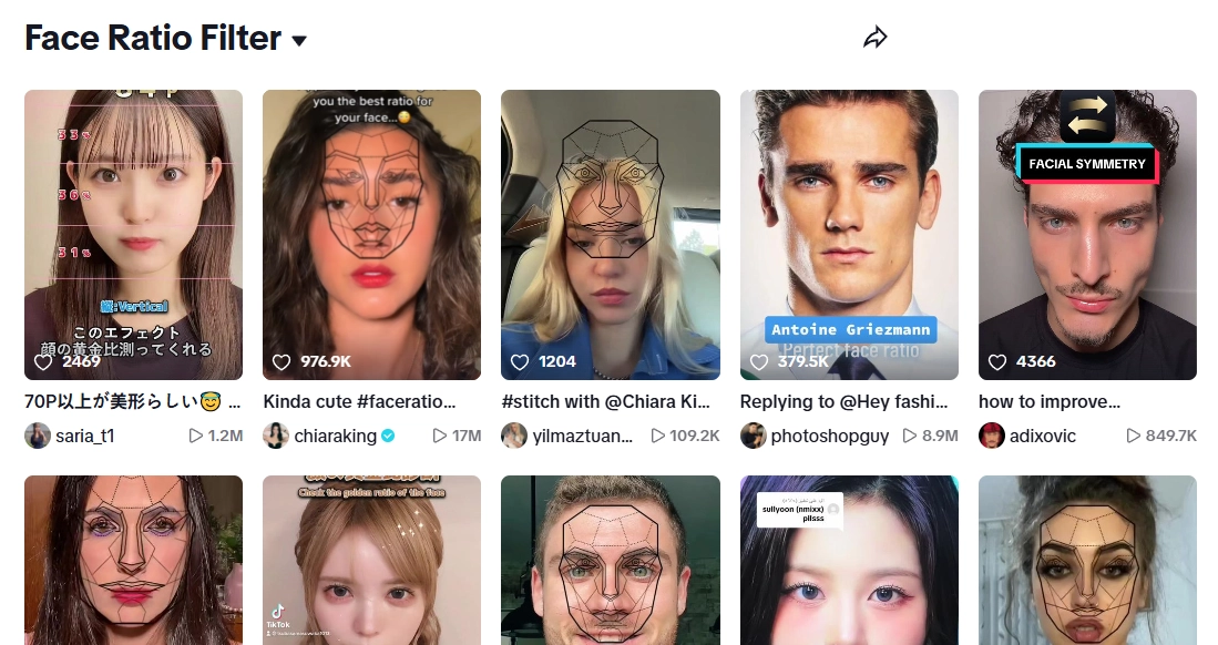 TikTok keeps making your day, so obviously you can find some face ratio filters here. The perfect face filter on TikTok will not only check if your face matches the golden face ratio standards, but also make adjustments on your face to fit the perfect face ratio mask. Then you can see what you would look like with a “perfect face ratio.” You can also find the facial thirds filter on TikTok.