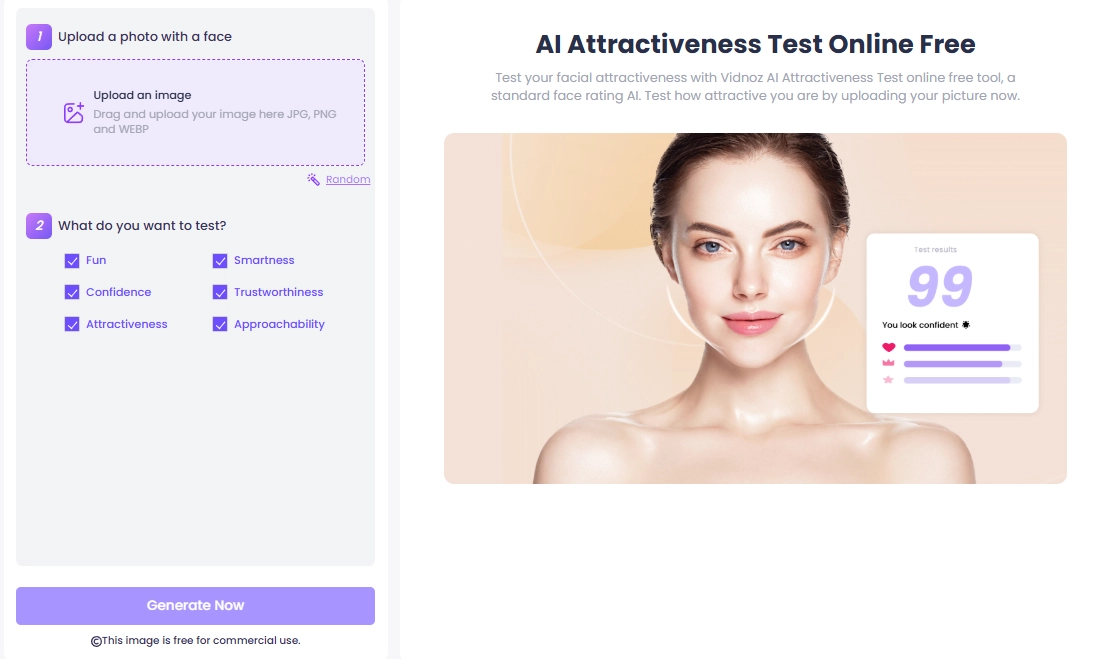 Step 3.Click 'Generate Now' to get the face attractiveness rate: