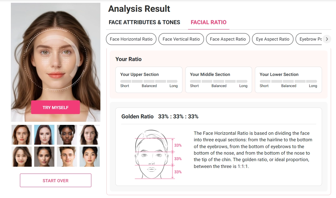 People always think that the more beautiful the face, the more attractive it is; and the face ratio (seems to) determine the beauty level. This plausible theory arises from people's appearance of anxiety. So will a perfect face ratio really improve attractiveness? Maybe you can unveil the secret using the AI attractiveness test.