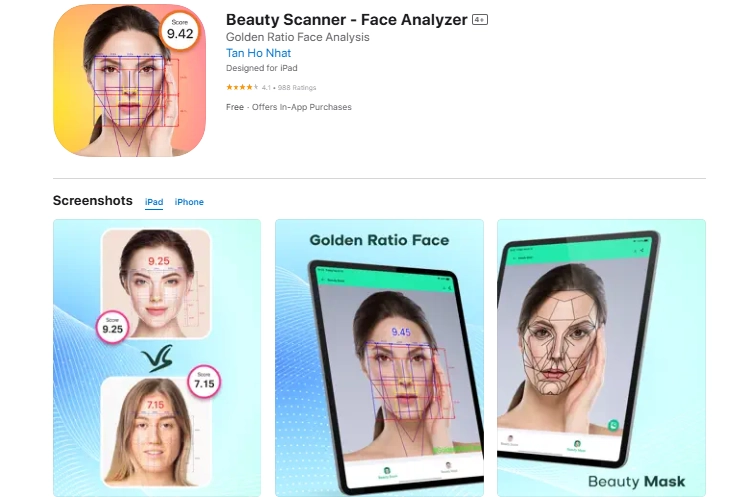 Beauty Scanner is a free perfect face ratio filter app. You can get complete facial ratio values from multiple angles, such as the golden ratio mask or the 33 face ratio filter. It works well for both iOS and Android users. This app is suitable for those who want to measure their facial ratios just for fun.