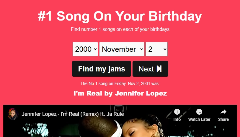 Chosic is a simple and efficient tool to find the general number one song on your birthday. The site quickly identifies the top English hit on your day and lets you enjoy it right away.