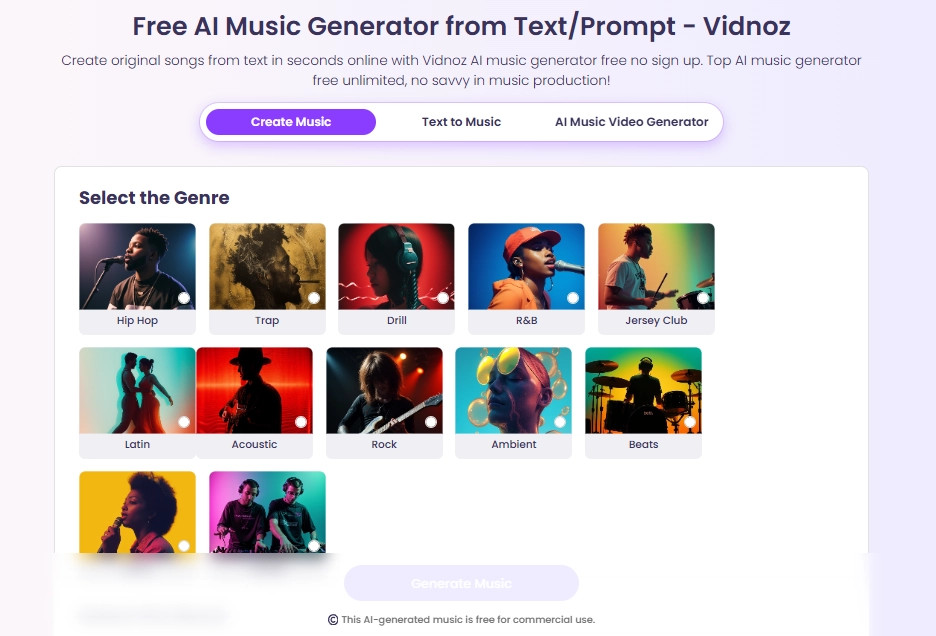 Creating your own number 1 birthday song is available now with Vidnoz AI music generator. Designed for everyone, its clear interface and guide allow you to quickly compose an original music like a pro.