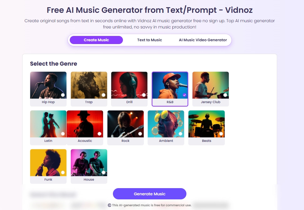 Solution 1. Compose Unique HBD Songs For Adults with Vidnoz AI Music Generator