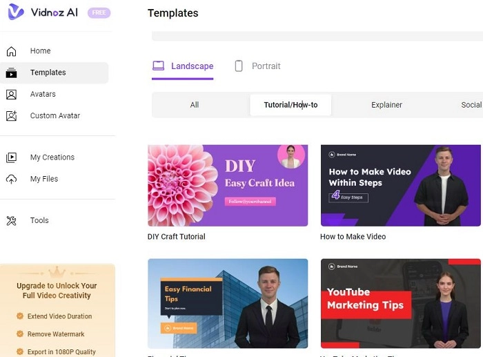 Vidnoz AI offers a ton of templates that can make the process of creating YouTube videos very easy. The templates are categorized into different types and based on the topic or niche of your channel, you can choose one that fits. All the templates offered by the AI video generator are completely free to use.