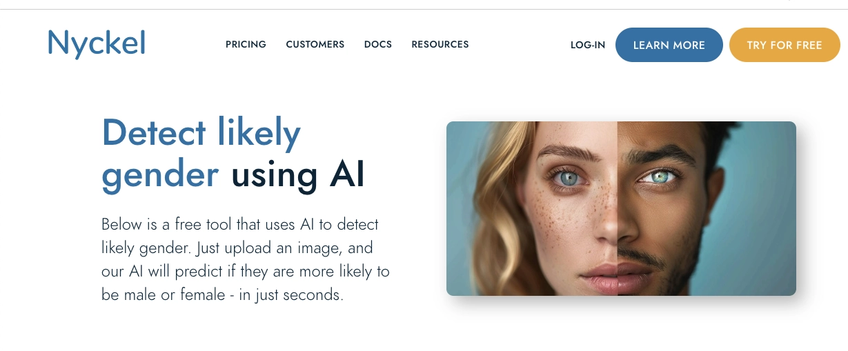 As one of the top-notch artificial intelligence tools, Nyckel Gender Detector helps to test the gender based on the photo. Ordinary people can predict the gender just by uploading an image in a short time - there’s no need to wait for several hours or days.