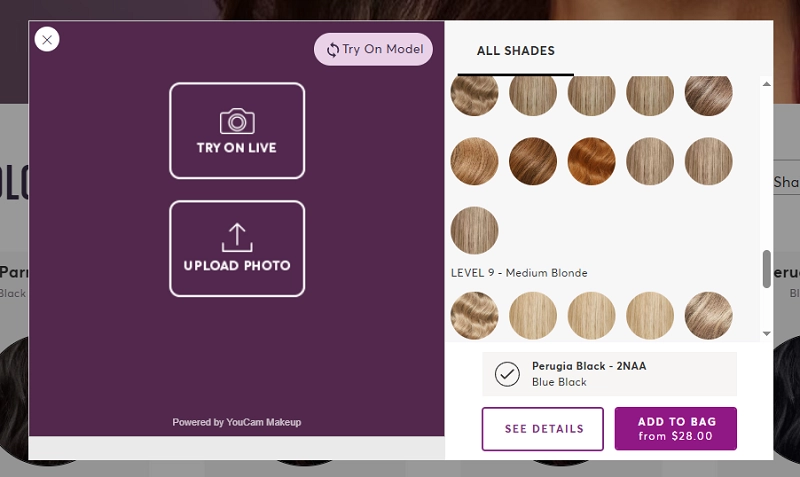 Step 2 Choose between “Try on Live” or “Upload a Photo”. You can also try shades on the model.
