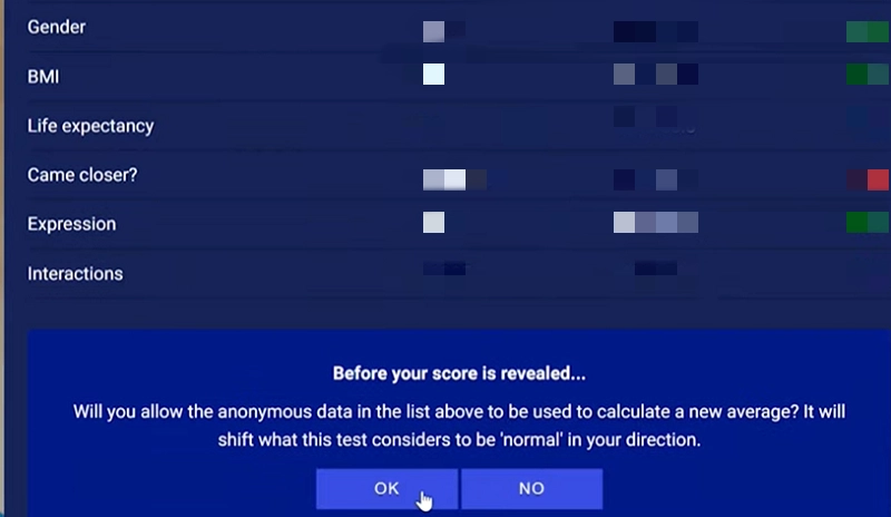 - Average rate: Am I Normal? Now it will draw a conclusion on how normal you are in the form of xx% Normal. Before generating the eventual test result, you can decide whether to share your data to help accumulate a new average on this platform.