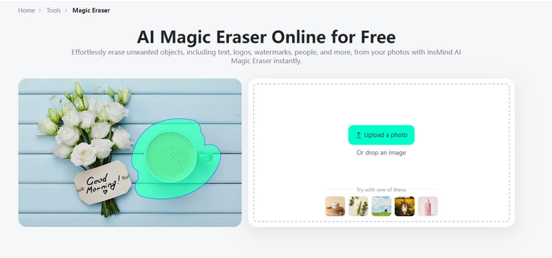 The most instant way to crop someone out of a picture is AI erasing. Through careful testing, InsMind Magic Eraser leaps out for its seamless outputs. On InsMind Magic Eraser, users are able to remove any object from a photo by simply brushing. It performs well for people, text, logos, watermarks, and other elements. How to crop someone out of a photo free with InsMind Magic Eraser? Here are the steps.
