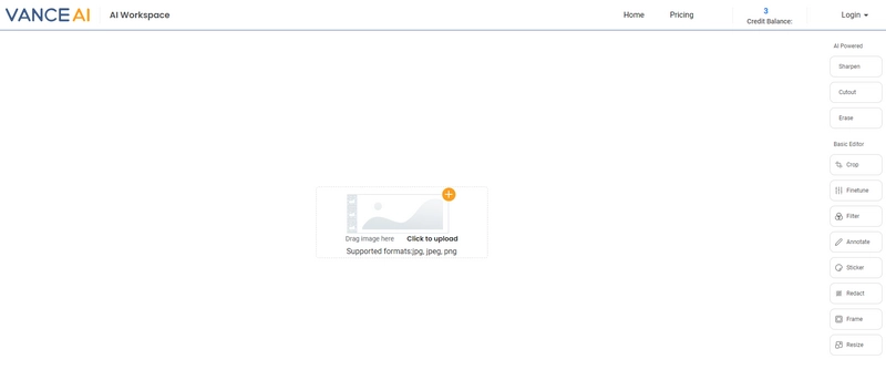 Step 2. Click the upload button to import your photo or use the drag-and-drop action.