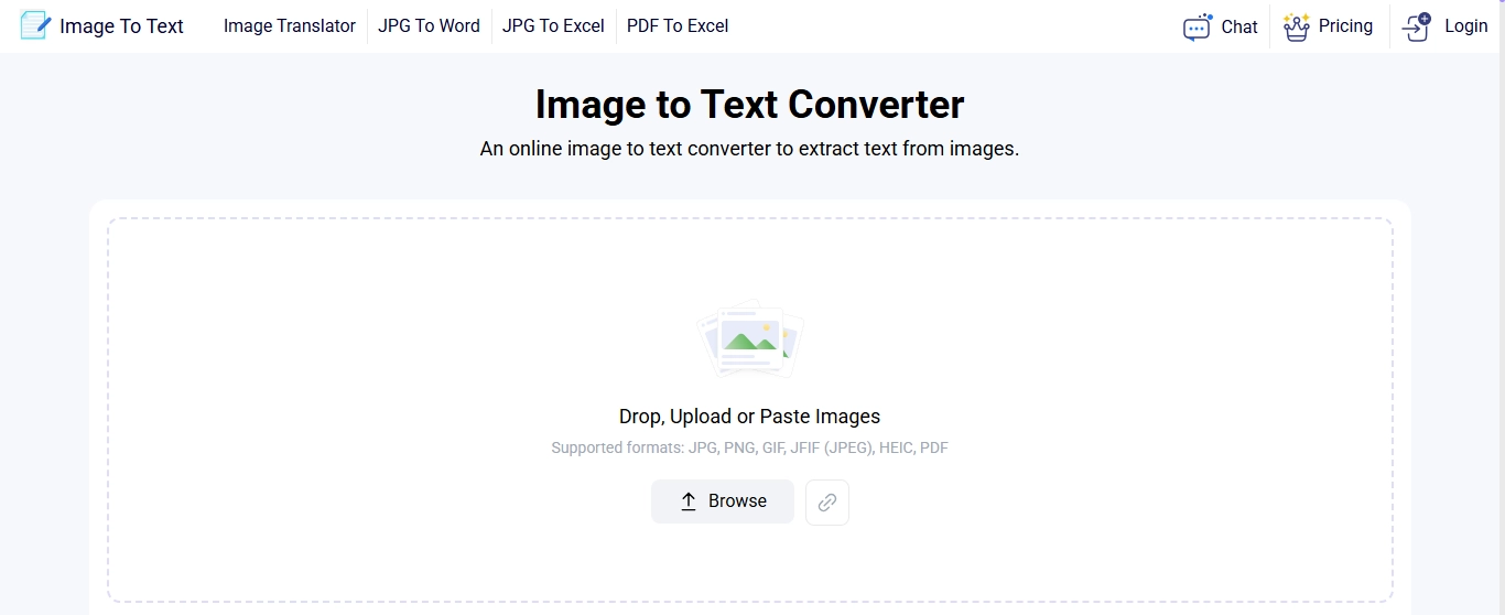 If you want to know how to extract text from image files, it will surely make your list. This free image text extractor helps you get text from JPG, PNG, GIF, or TIFF images in seconds. Image to Text Converter uses smart AI and OCR technology to extract text from images.