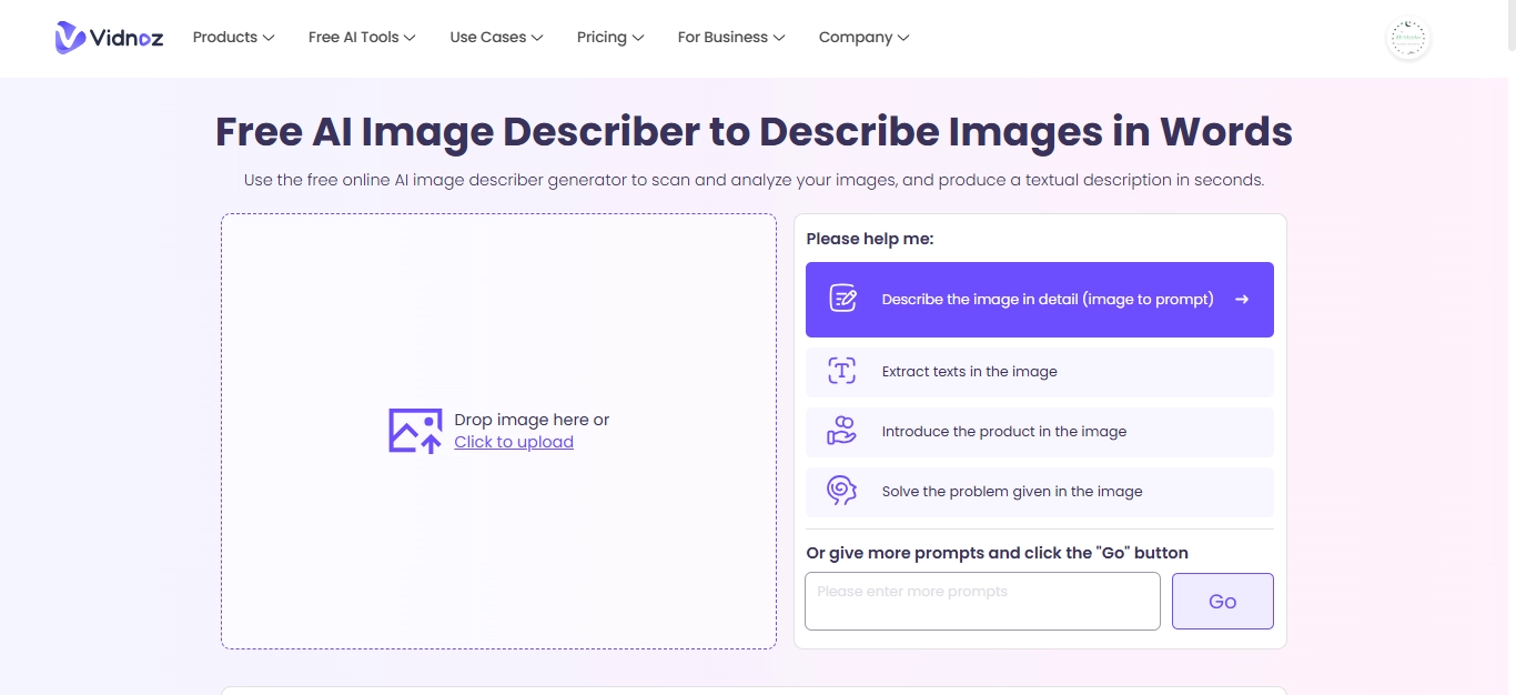 1. Vidnoz AI Image Describer