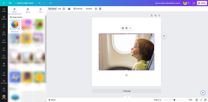 Step 1. Open Canva and upload an image. Click on the Background Remover to remove the background.