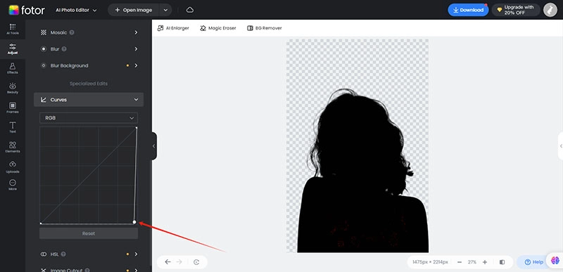 Step 3. Adjust the silhouette with the Brightness & Color features. Click on the Download button and save the image to PNG with a transparent background.