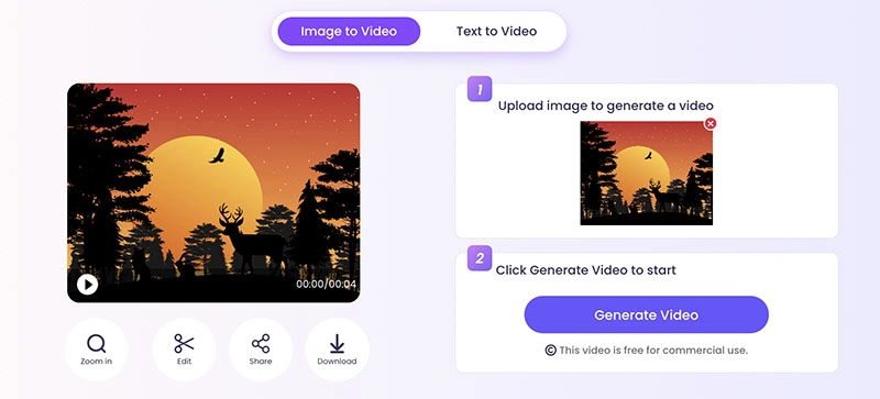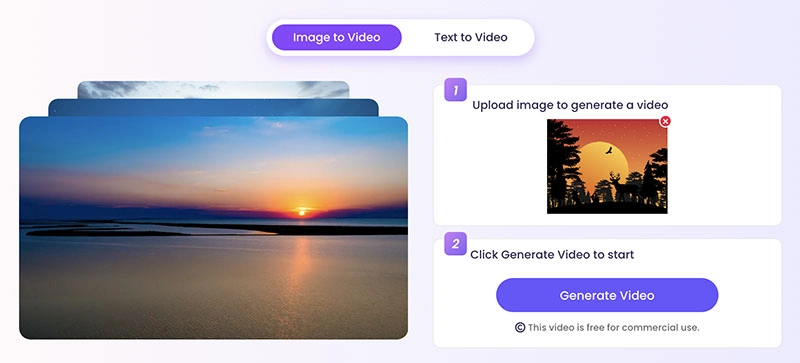 There is no need to download or install software. Just upload your silhouette photos, and the web-based video generator will convert it to a video online for free. In addition, you can also generate a video with its text to video AI.