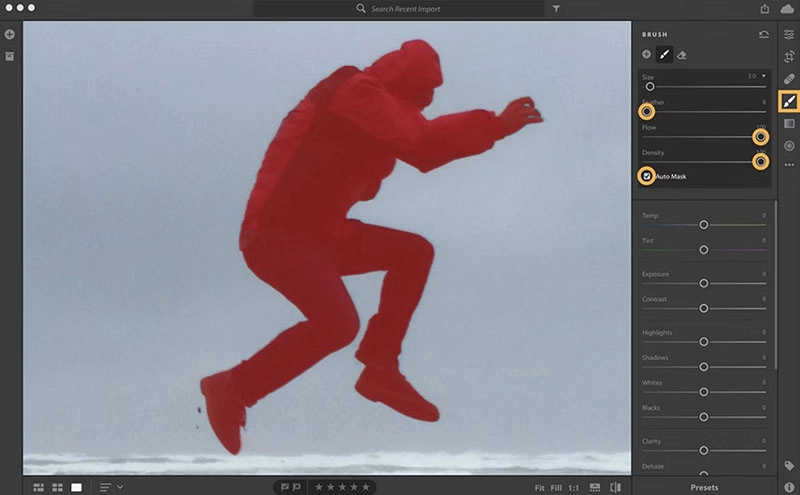 Step 1. Highlight the person or object in the photo with the Brush tool enabled by Auto Mask. Adjust the brush size with the slider and brush to paint a mask over the object.