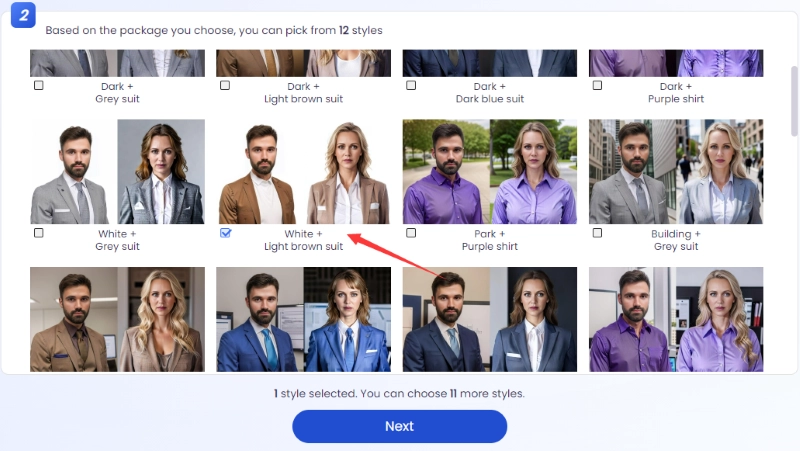 Up to 22 styles for males and females to choose from, Vidnoz headshot generator offers you multiple dressing styles(shirts and suits) and different backgrounds(office, pure white or black, library, etc.).
