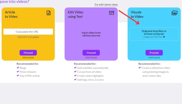 2. Click on the "Create A New Project" option and select "Visuals to Video."