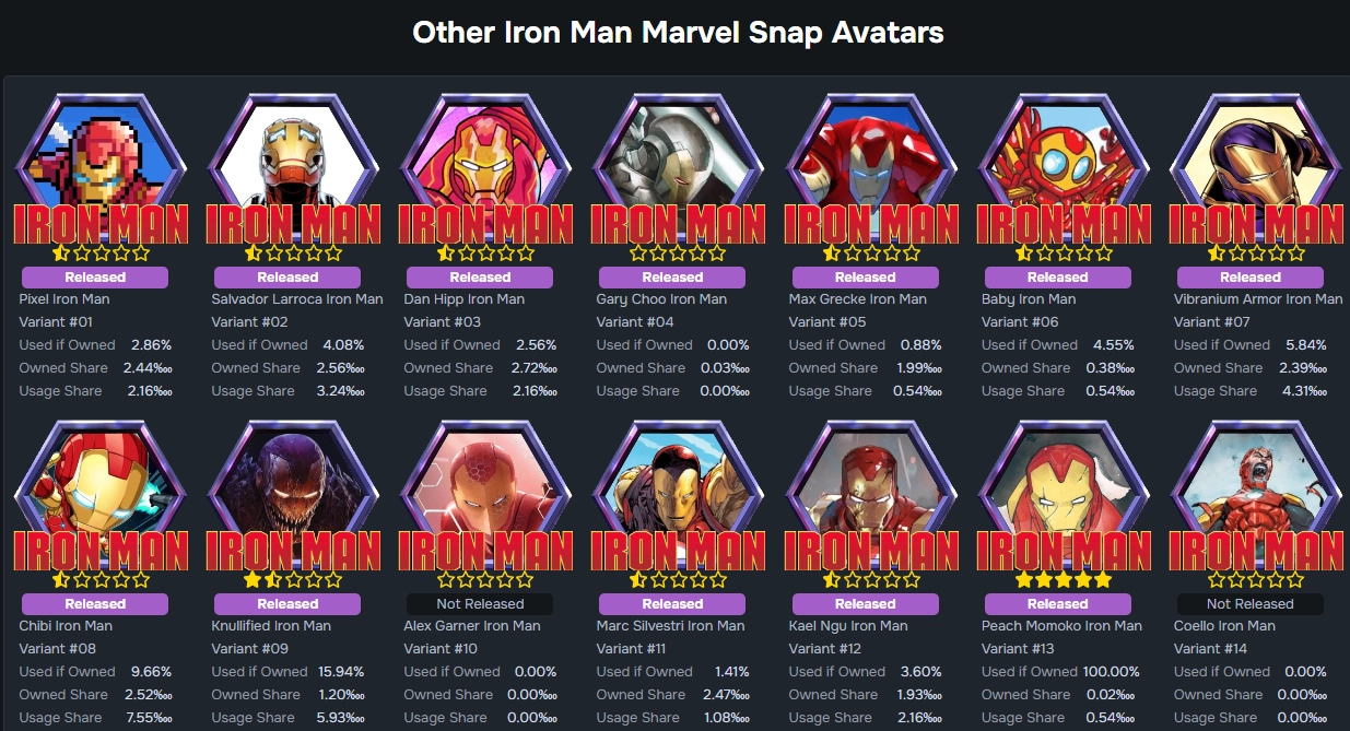 Many iron man fans gather in specific forums, such as the community called Marvel Snap Zone. Here, some fans that are strong in image creation will share some iron man avatars and thus, you can ask for authorisation and use one as your avatar: