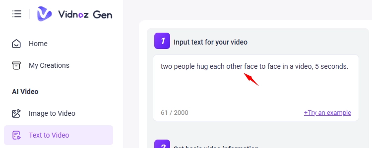 3. Vidnoz Random AI Hug Videos from Text Online Free