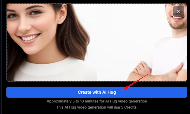 Step 3. Click “Create with AI Hug”, and it will generate an AI hug video in minutes with 5 credits.