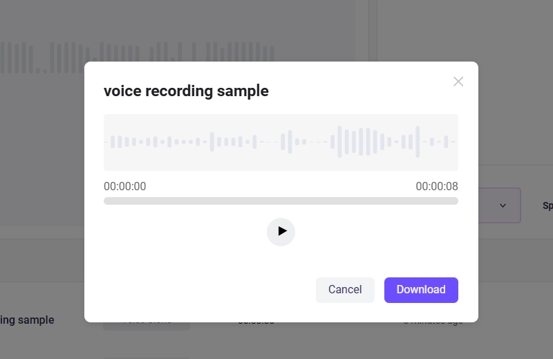 Step 4: Wait for a while, this AI voice generator for dead person can be finished cloning, you can preview the AI-generated voice here, and download the audio to use.