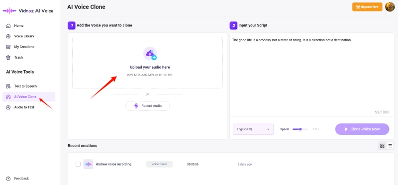 1. Vidnoz AI Voice Clone - Reproduce the Voice of Your Beloved